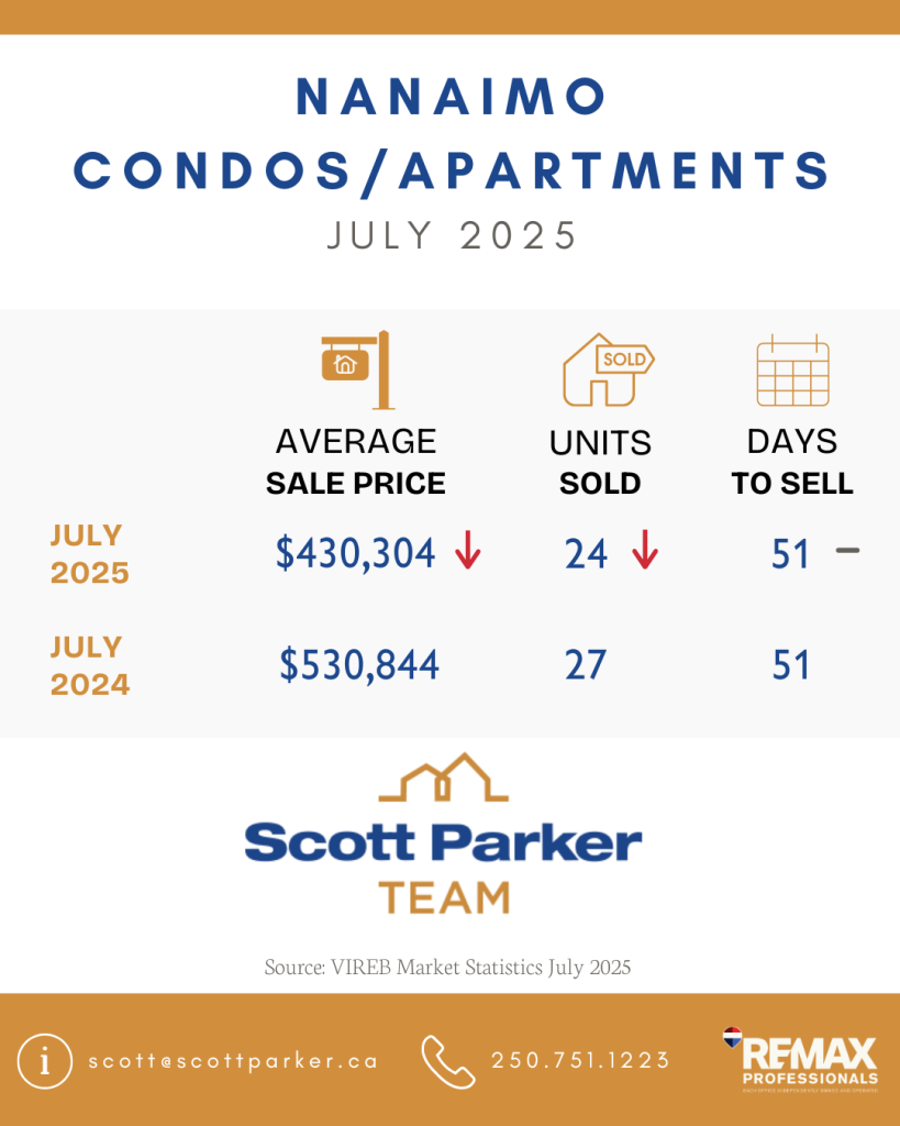 The Vancouver Island Real Estate Board (VIREB) recorded 806 unit sales (all property types) in July 2025, up 10 per cent from one year ago. Year-over-year active listings (all property types) were 4,512, up one per cent from the previous year.