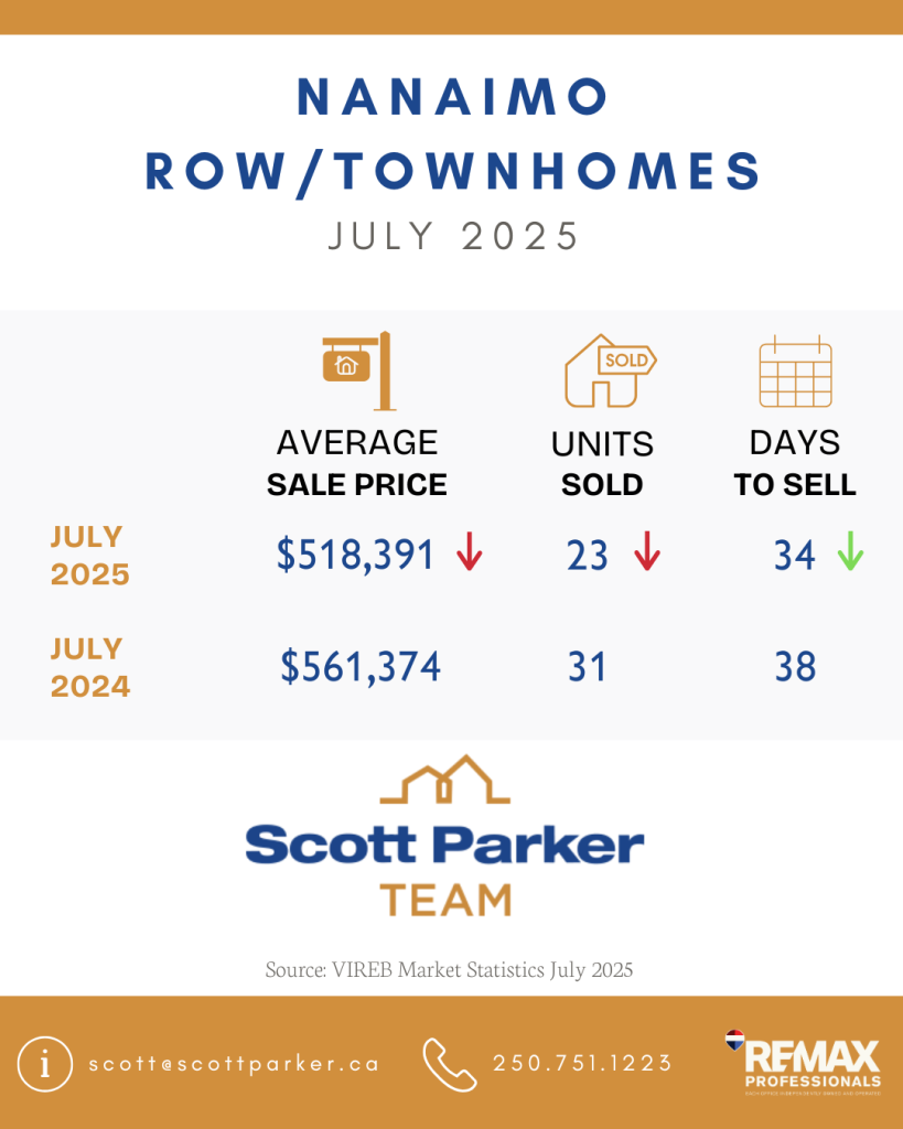 Active listings of single-family homes were 1,483 last month compared to 1,596 in July 2024. VIREB’s inventory of condo apartments was 424 in July, down from the 455 listings posted one year ago. There were 354 row/townhouses for sale last month compared to 342 in July 2024.