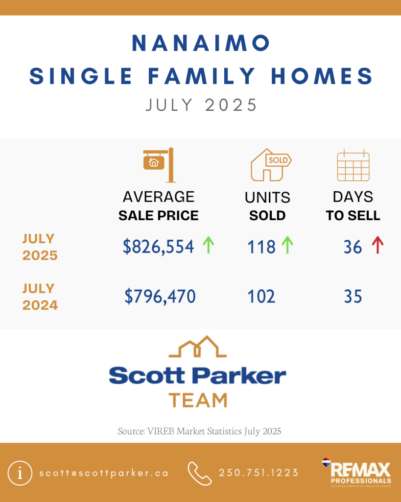 The Vancouver Island Real Estate Board (VIREB) recorded 806 unit sales (all property types) in July 2025, up 10 per cent from one year ago. Year-over-year active listings (all property types) were 4,512, up one per cent from the previous year.