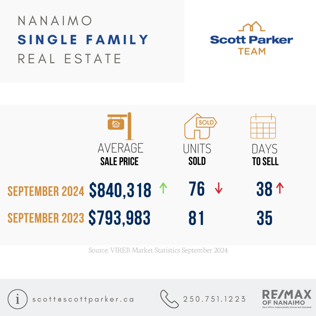 The Vancouver Island Real Estate Board (VIREB) recorded 637 unit sales and 4,465 active listings (all property types) board-wide on the MLS® System in September 2024, up 16 percent and 24 percent, respectively. In the single-family category (excluding acreage and waterfront), 320 homes sold in September, up 22 percent from one year ago and down four percent from August. Sales of condo apartments last month came in at 69, decreasing by 19 percent year over year and one percent from August. In the row/townhouse category, 93 units changed hands in September, up 31 percent from one year ago and 35 percent from August.